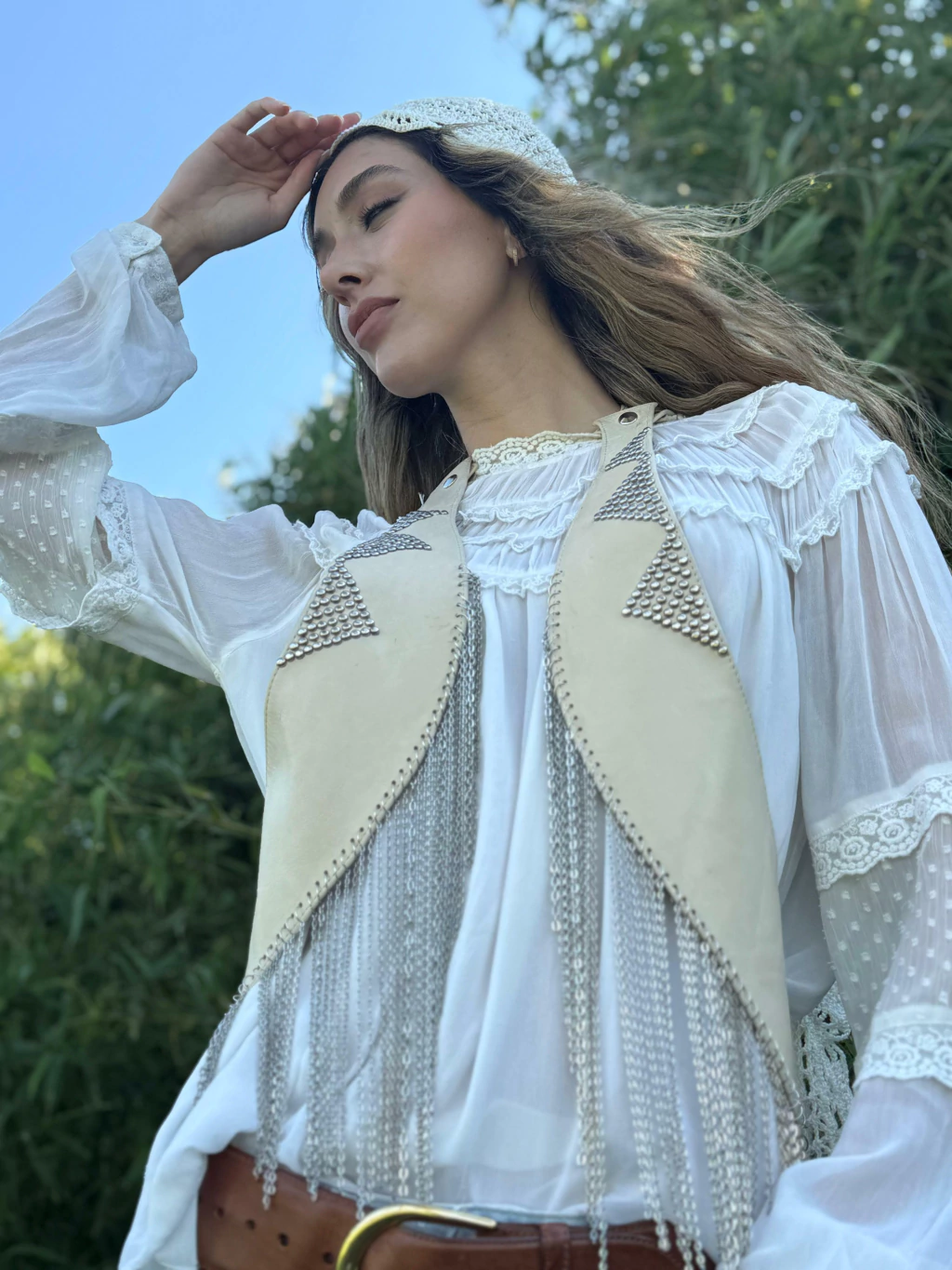 Chaleco confeccionado en cuero con cadenas de aluminio y accesorios de acero. Tiempo de confección 10 días hábiles aproximadamente